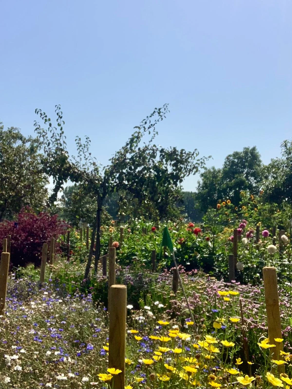 Wij laten bloemen, fruit en eetbare bloemen groeien zoals de natuur het bedoelt: op hun eigen ritme, met ruimte, aandacht en zorg voor de bodem. In onze zelfpluktuin brengen we mensen dichter bij waar alles vandaan komt, en bij de verwondering over hoe groeit, bloeit en rijpt.